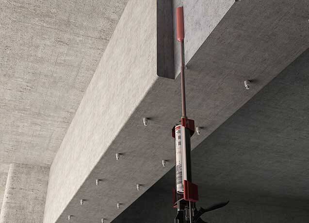 3.Inject HM-500 anchoring epoxy into the hole, starting from the bottom, while slowly drawing back the static mixer. In any case avoid entrapping air. For deep holes extension tubing can be used.