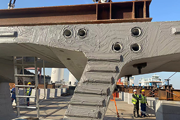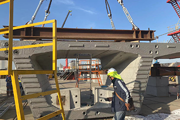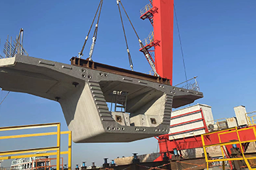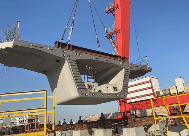 --Segment in place.The bridge building machine is ready, and the segments are hoisted into place in the order of splicing.